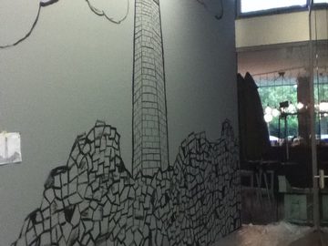 Jak vysvětluje jedna z členek Milena Mařáková, výstava v Lipsku souvisí se Zastávkou. „Jelikož je tato galerie výjimečná svým tvarem (žádná stěny zde nesvírají pravý úhel) a také se dá s některými stěnami pohybovat, snažili jsme se ji využit co nejlépe. Její tvar nám již ze začátku připomínal Zastávku a nakonec jsme se rozhodli přenést Zastávku do galerie. Vytvořili jsme mapu galerie a rozdělili jednotlivé místnosti na různé části Zastávky. Všechny stěny galerie jsme pokryli našimi kresbami obce. Chtěli jsme, aby si člověk, který vejde dovnitř, opravdu připadal jak v Zastávce,“ popisuje studentka.
